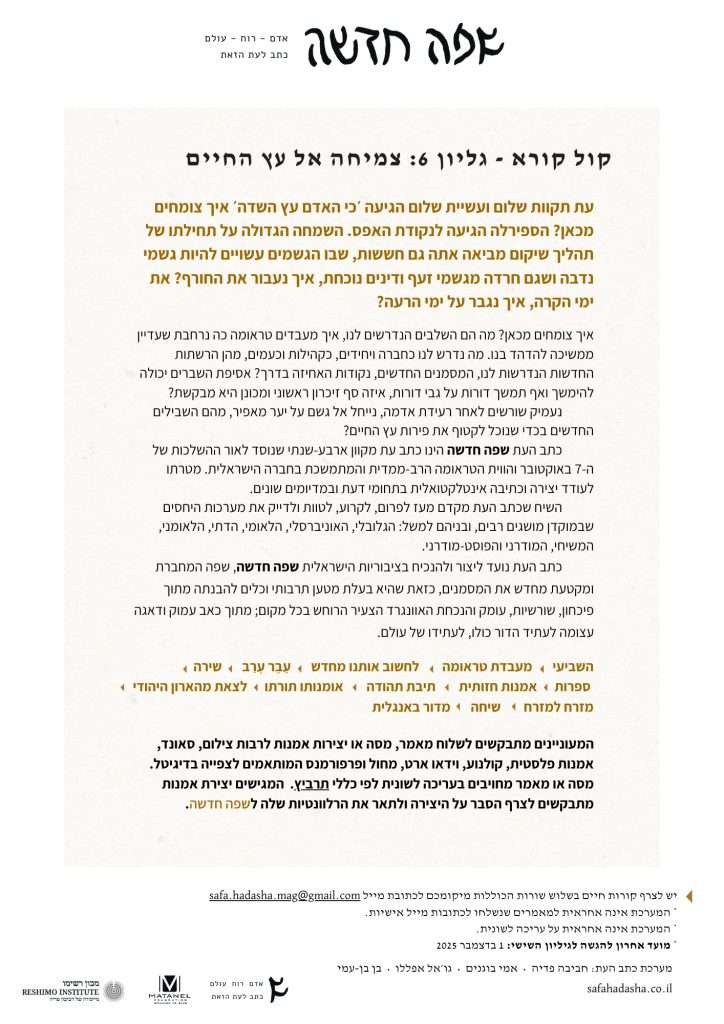 קול קורא לגליון מס׳ 6: צמיחה אל עץ החיים