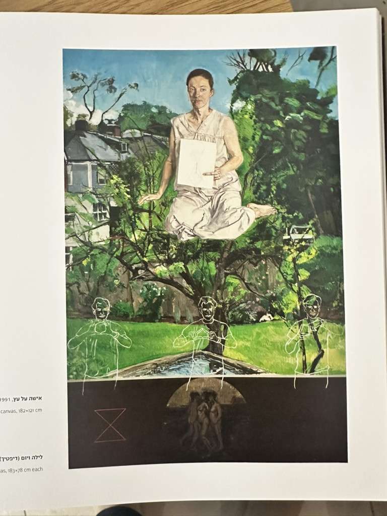 הציור של האקליפטוס בוקע מהחללים הריקים, עומד באמצע שדה הראייה בינינו לבין דלת הפח. זה ציור של אחרי מלחמה, חשבתי. הצבע הטרי הזה של השגרה. קולות ציפורים מזדווגים עם צלילי הוונטילטור בסטודיו. אם רק יכולתי לגדר את אבני-השפה הצבועים שיוכלו להתייבש בזמנם, כדי שגודזילת המלחמה לא תדרוך עליהם.[5] רק שלא תבתר את גוף הרקיע עם רעמת מנועי הטורבו האמריקאים שלה.