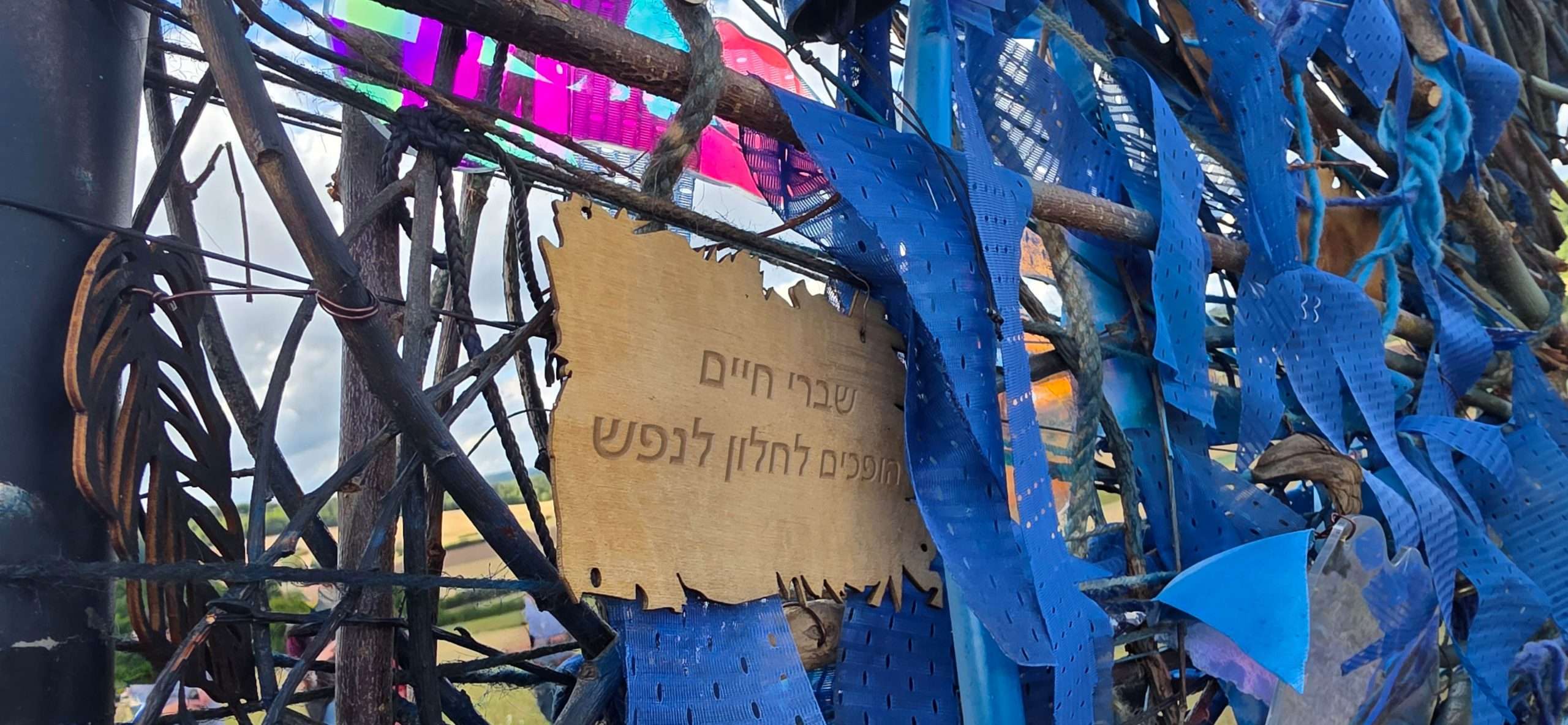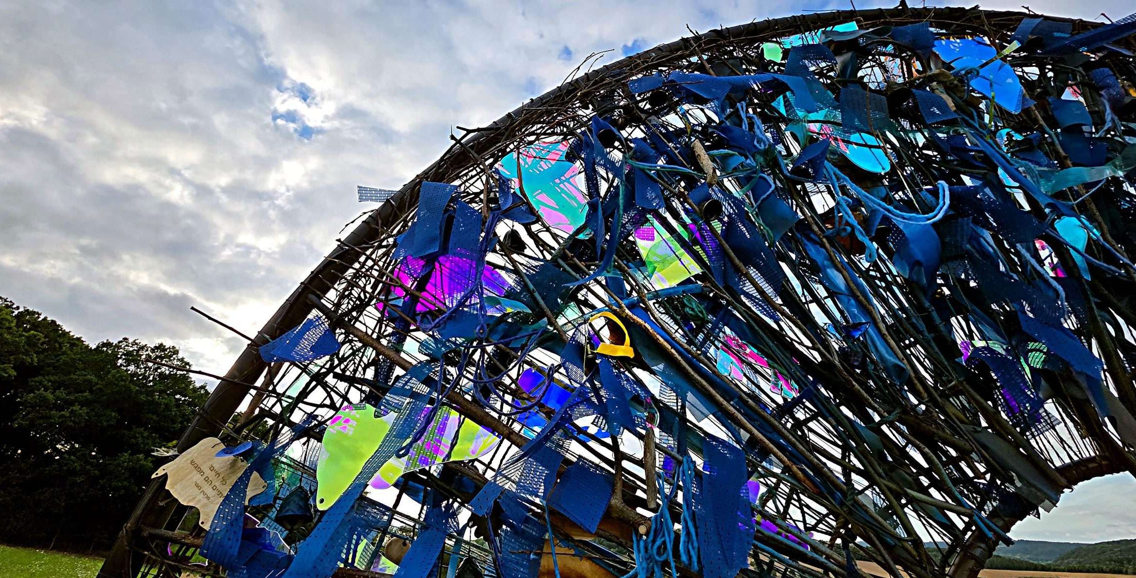 איננה תלויה באוויר אלא נטועה בקרקעs,עין יציבה מול הרוחות. היא עומדת כנגד הסערה, אוספת לתוכה שברי חיים, צבעים, מילים וחפצים. הרוח מניעה את חלקיה הקטנים, היוצרים מוזיקה ורטט עדין. היא הופכת למראה קוסמית: עין שמביטה החוצה אל האופק ובאותה נשימה פנימה, אל נפש האדם. המילה רוח נוכחת כאן בשני מובניה – כוח טבע ונשמה קולקטיבית והעבודה כולה מבקשת לבחון את רוח הזמן מאז יום שמחת תורה ההוא לפני שנתיים